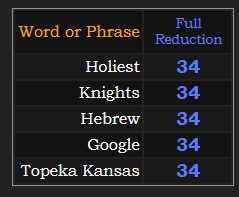 In the image above, you can see the significance of the number 34 to not only “Google”, but also to “Topeka, Kansas”, the “Hebrew” “Knights” Templar, who believe they are the “holiest” people on Earth, and everyone else is evil, so their Satanic God appointed them to rule over us to establish “order” because we are just dumb animals that represent “chaos” to this secret society.