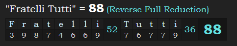 Firstly, notice what the name of this encyclical sums to in the secret code of the fraternities of the world, gematria.