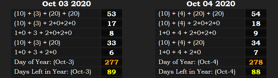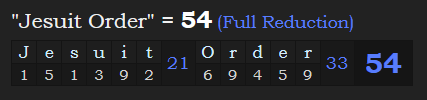 Moving on to October 4th, 2020, this was a date with 54 and 34 numerology. This corresponds with the gematria of “Jesuit Order” = 54, as seen below, which is what Pope Francis is a member of. If you are interested in the significance of 34 numerology, please see my previous post on this website.