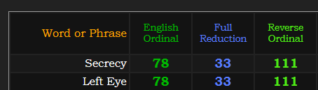 She also sings about a “rainbow”, which is a Judaic symbol as well as an ancient symbol of the “rainbow serpent”. I have a post coming soon about Freemasonry and colors, as well as another post about the significance of the number 33. For now, just know that “Masonry” = 33, “Order” = 33, “Federal” = 33, “Police” = 33, and “Secrecy” = 33. Also, 111 is just 666 using the base-60 number system, which I will discuss later.
