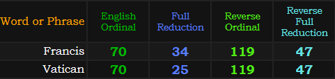 The day before was also significant because it was a date with “Vatican” and “Francis” numerology, and there were multiple “Vatican” related headlines.