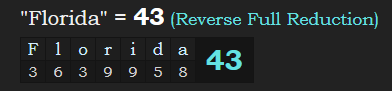 Yesterday was a date with 43 numerology, and I specifically said to watch for Florida related propaganda in yesterdays date decode, because “Florida” = 43.