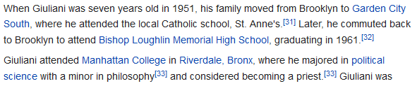 This all starts to “add-up” when you realize that Rudy Giuliani went to the Private Catholic high school and private Catholic College.