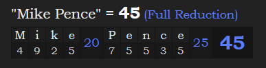 Today is a date with 45 numerology. Donald Trump is the 45th president, “Geometry” = 45, “Ritual” = 45, “Mike Pence” = 45.