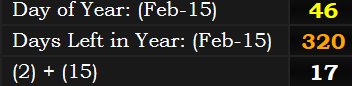 As you can see above, the date of his sentencing was the 46th day of the year, and the day leaving 320 days left in the year because it was a leap year as well.