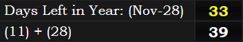 Next, check out the day that he supposedly died upon, the day leaving 33 days left in the year. “Masonry” = 33 & 39.