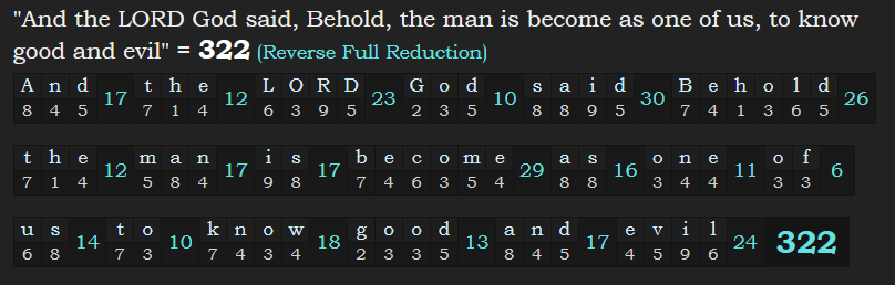 His name also contains other interesting gematria, such as 322, the number connected to Skull and Bones, and Genesis 3:22, a verse about obtaining immortality, which has always been the goal of the ancient mystery religions and Catholic Church which is from Egypt and Sumer.