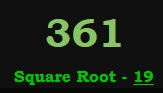 Today is the day leaving 361 days left in the year. The square root of 361 is 19.