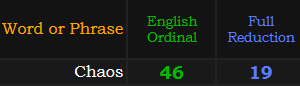 Today is also a date with 46 numerology. “Chaos” = 46 & 19.