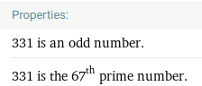 Today is the day leaving 331 days left in the year. 331 is the 67th prime.