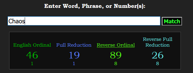 Today also has 46 & 26 numerology, corresponding with “Catholic” = 46, Joe Biden the 46th president, as well as “Chaos” = 46 & 26.