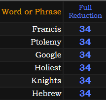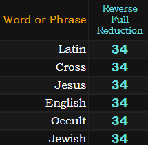 17 is the 7th prime number, and “17+17” = 34 as well. That is why the following words equate to 34 using the ancient practice of gematria.