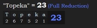 Notice also that this was 2/3 like 23. “Topeka” = 23.
