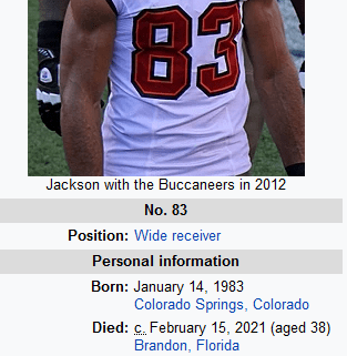 He played number 83 for the Buccaneers, and was born in the year 1983. Now they are saying he was found dead at age 38. These are the “murder” numbers.