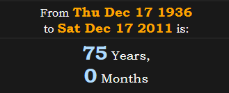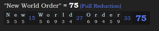This makes it a span of EXACTLY 75 years later, corresponding with “Catholic Church” = 75, as well as “New World Order” = 75.