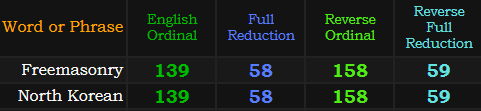Also, “North Korean” and “Freemasonry” overlap in all four ciphers, not by accident.