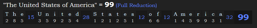 9/9 is also significant because of the connection with “The United States of America” = 99, the name of which was chosen on 9/9/1776.