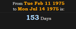 From 2/11/1975 to President Ford’s upcoming birthday on 7/14/1975 was a span of EXACTLY 153 days, corresponding with “President Ford” = 153, as well as with the fact that 153 is the 17th triangular, and he was visiting the 17 numerology Kansas Capitol Building next to the 17 numerology Masonic lodge and Jesuit Catholic Church.