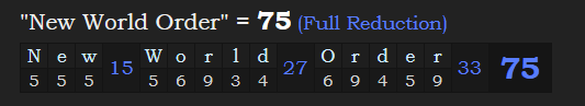 Notice also this was in the year ‘75, corresponding with “Catholic Church” = 75, as well as “New World Order” = 75.