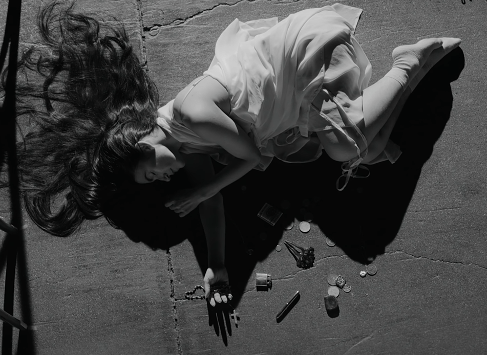 This theme of giving in to the corruption of mankind is continued throughout the video. Here is another example: a woman wearing all white to symbolize purity and innocence, holding the cross in her right hand, lies dead on the floor.