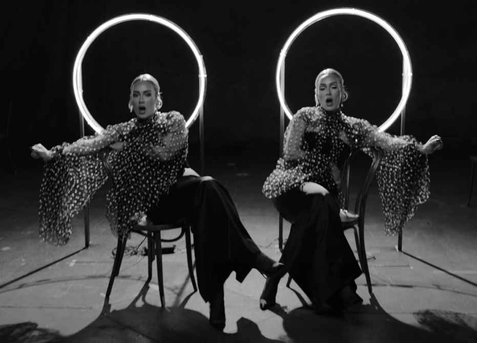 Next, you can see more evidence that Adele is involved with high level occultism from her contrived “earrings”. Notice the sun and moon duality symbology.
