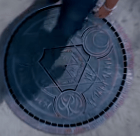 This piece of Catholic Masonic propaganda begins with the descending into the sewer drains (underworld) with the drain cover containing an ancient alchemical symbol called the”Star of David” with the Sun and Moon located on it. These two triangles represent the upper and lower worlds, a theme that occurs repeatedly throughout this “music video”.