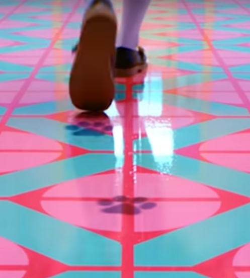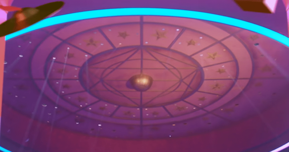 You can also notice that they are dancing in this “octagon” shaped room, with the same Illuminati “blood seal” on the floor. Also notice the red and blue which meet to make the color purple, which is the color of the aristocracy. That is why the crown of Queen Elizabeth is purple, because this color is sacred to the Phoenicians, Byzantines, Holy Roman Empire, and the Illuminati in general.